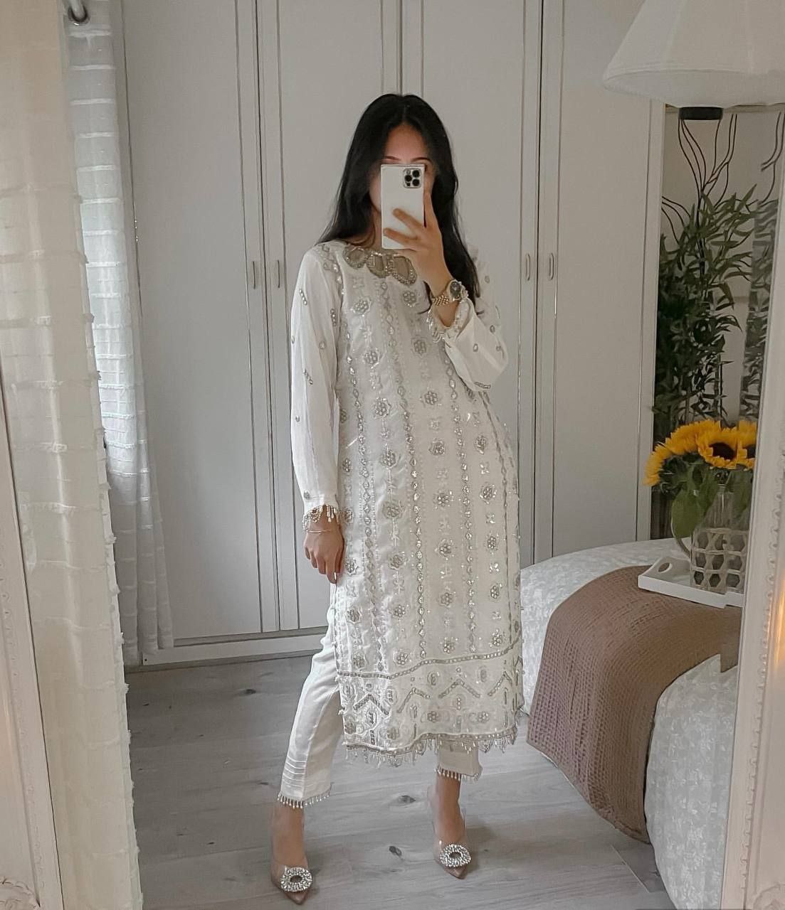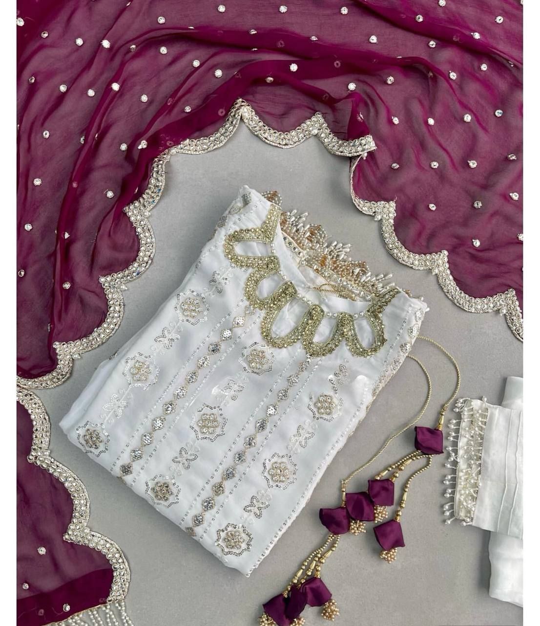 Unleash your inner fashionista with our Scarlet Sequin Splendor White Luxe Faux Georgette Kurti Set. Sparkle with sequins while staying comfortable in this unique kurti set made of high-quality georgette. Stand out from the crowd and make a bold statement with this one-of-a-kind piece.