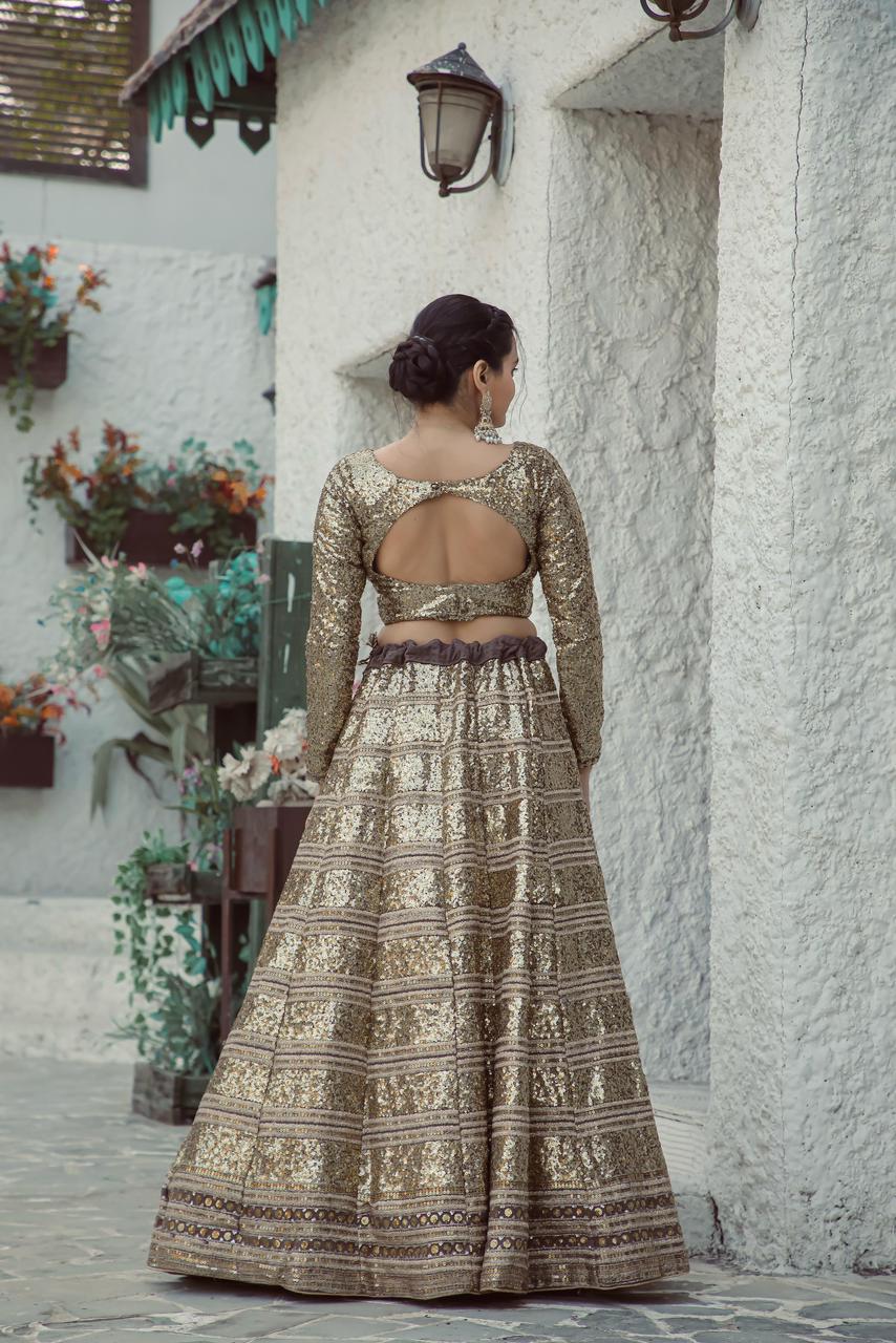 Get ready to shine and stand out at any wedding with our Shine in Sequin: Heavy Lehenga set. The stunning sequin and zari work add a touch of glamour to this faux georgette set. Perfect for the upcoming wedding season, this set will make you feel like a true fashionista. Don't miss out!