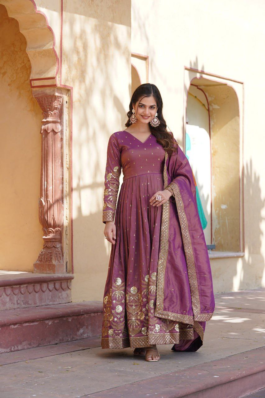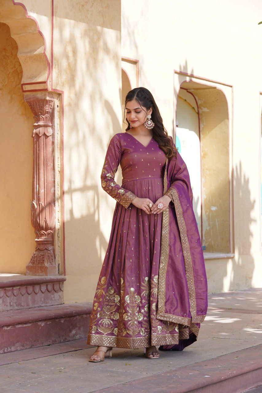 Experience elegance with the Shreenika Onion Pink Viscose Anarkali Gown Set. Made from high-quality viscose material, this set features a stunning onion pink color and an anarkali silhouette that provides a flattering fit for all body types. Elevate your style and make a statement at any event with this gorgeous gown set.