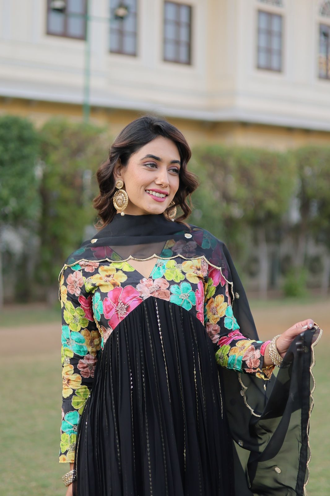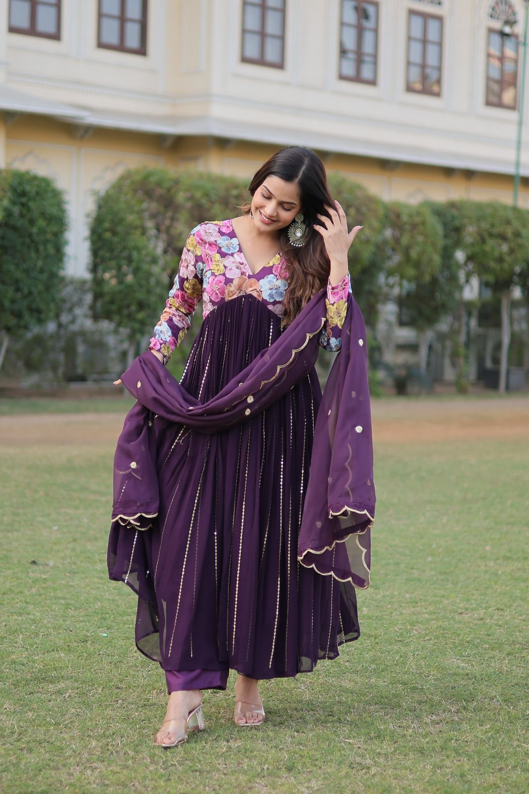 Elevate your style with Graceful Flair! The Aliya Cut Georgette Kurti Ensemble is a must-have for any fashion-forward wardrobe. This set features a beautifully embroidered upper part with a floral design, adding a touch of elegance to the aliya cut and flared kurti. Exude confidence and grace in this stunning ensemble.