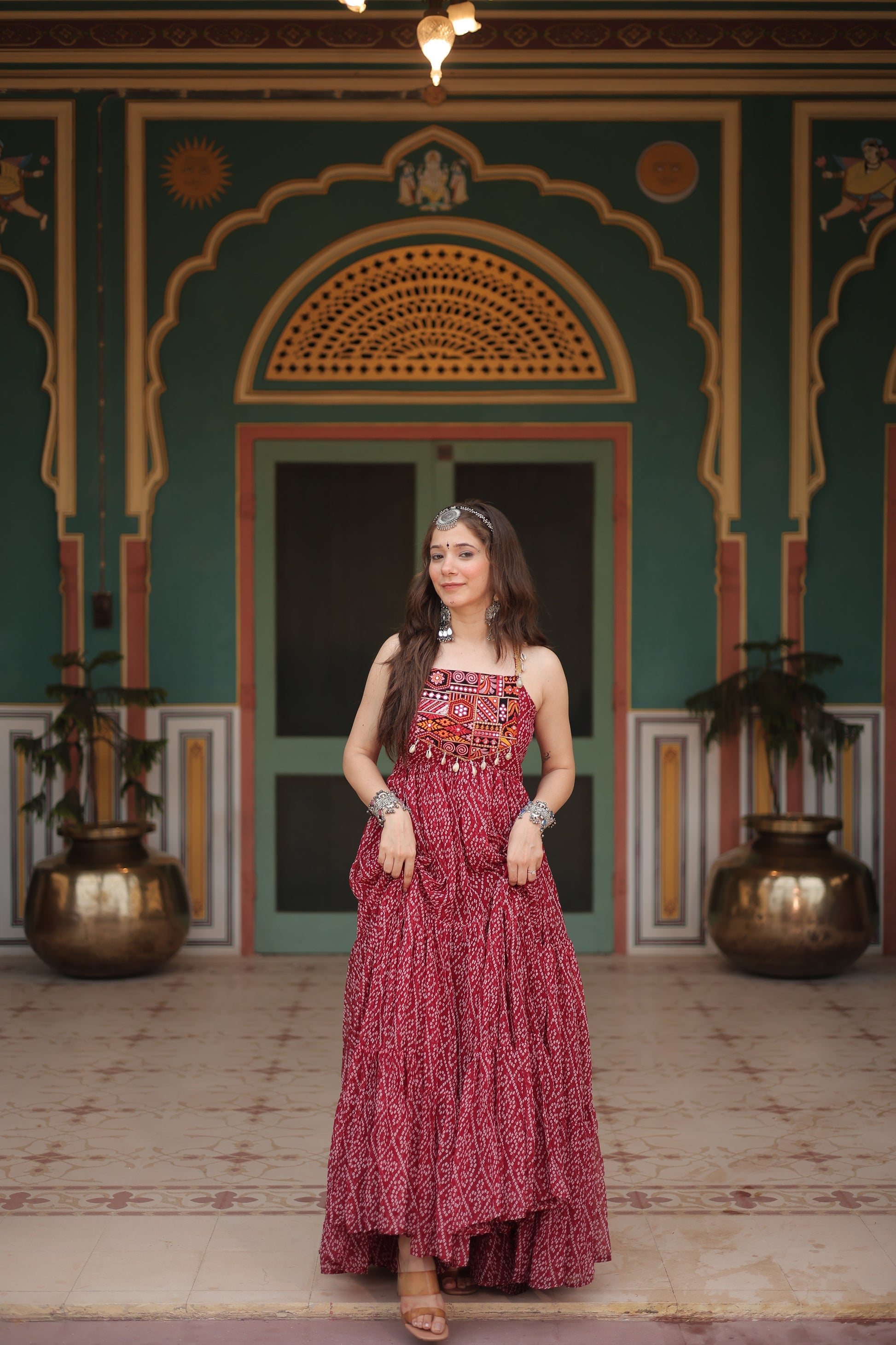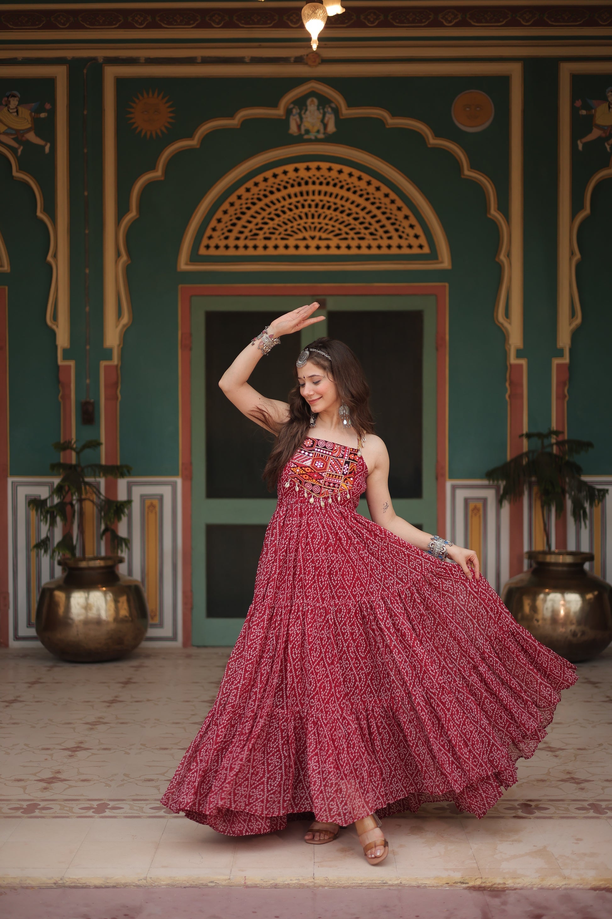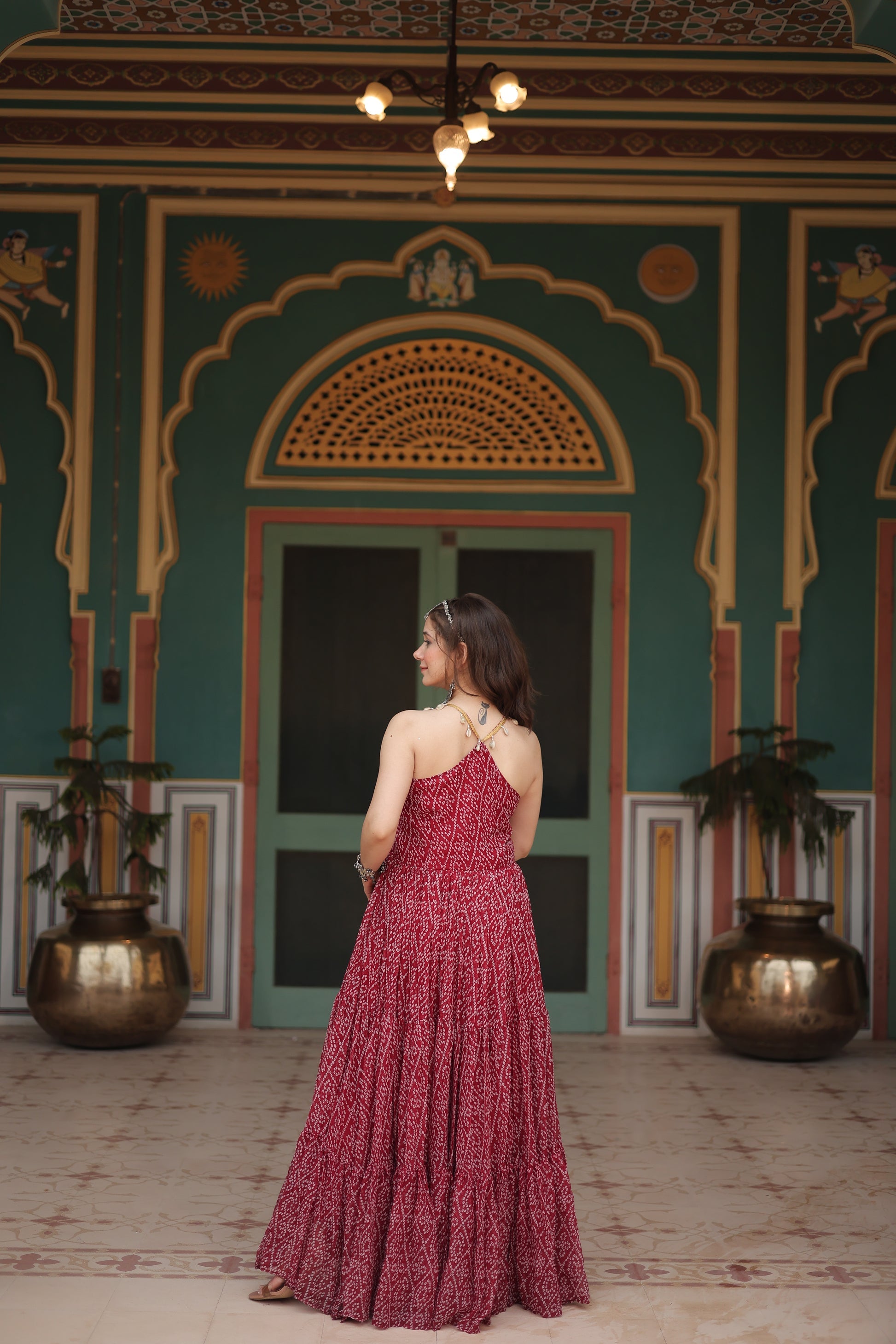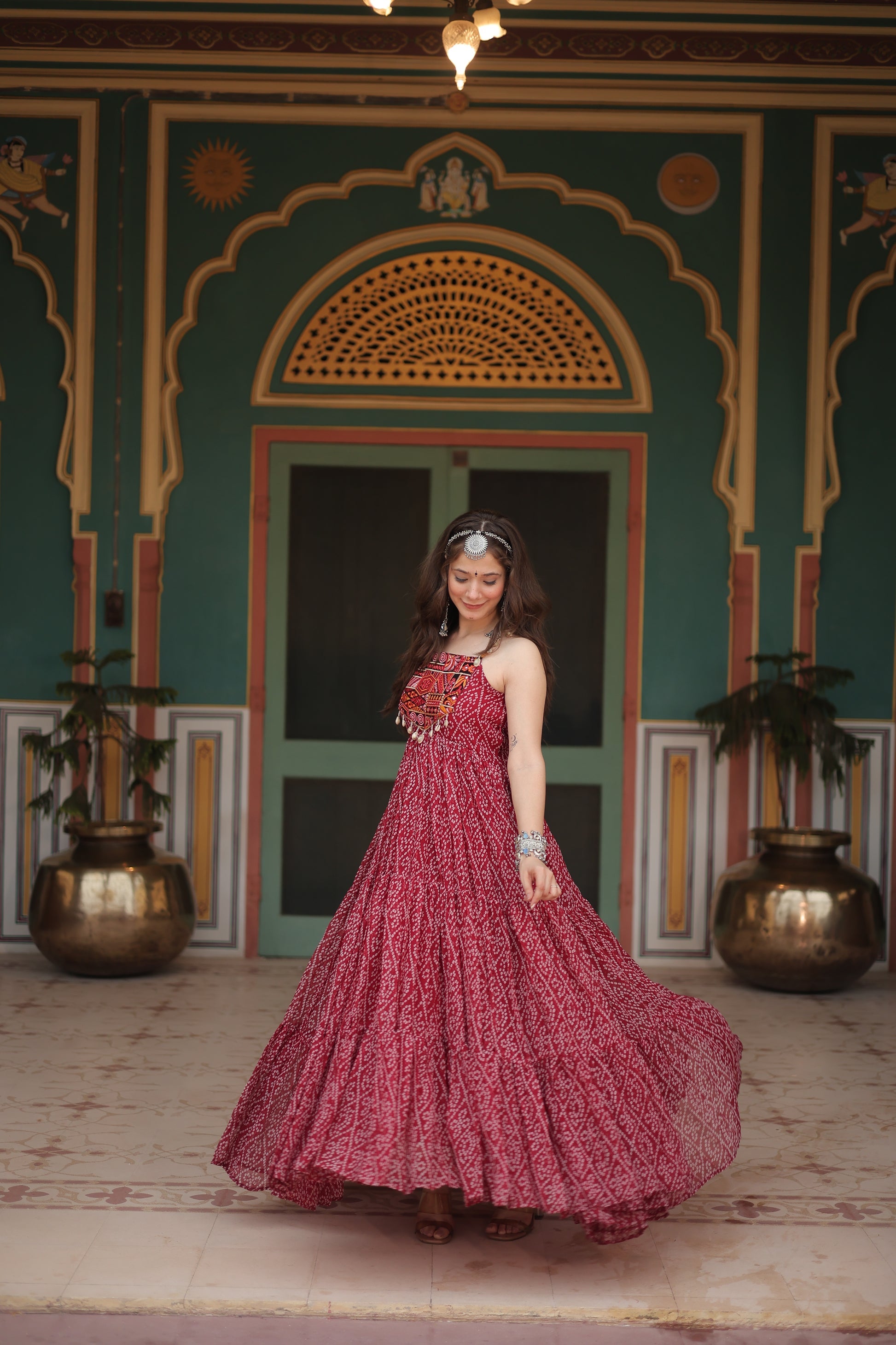 Taneesha Maroon Georgette Bandhani Printed Gown