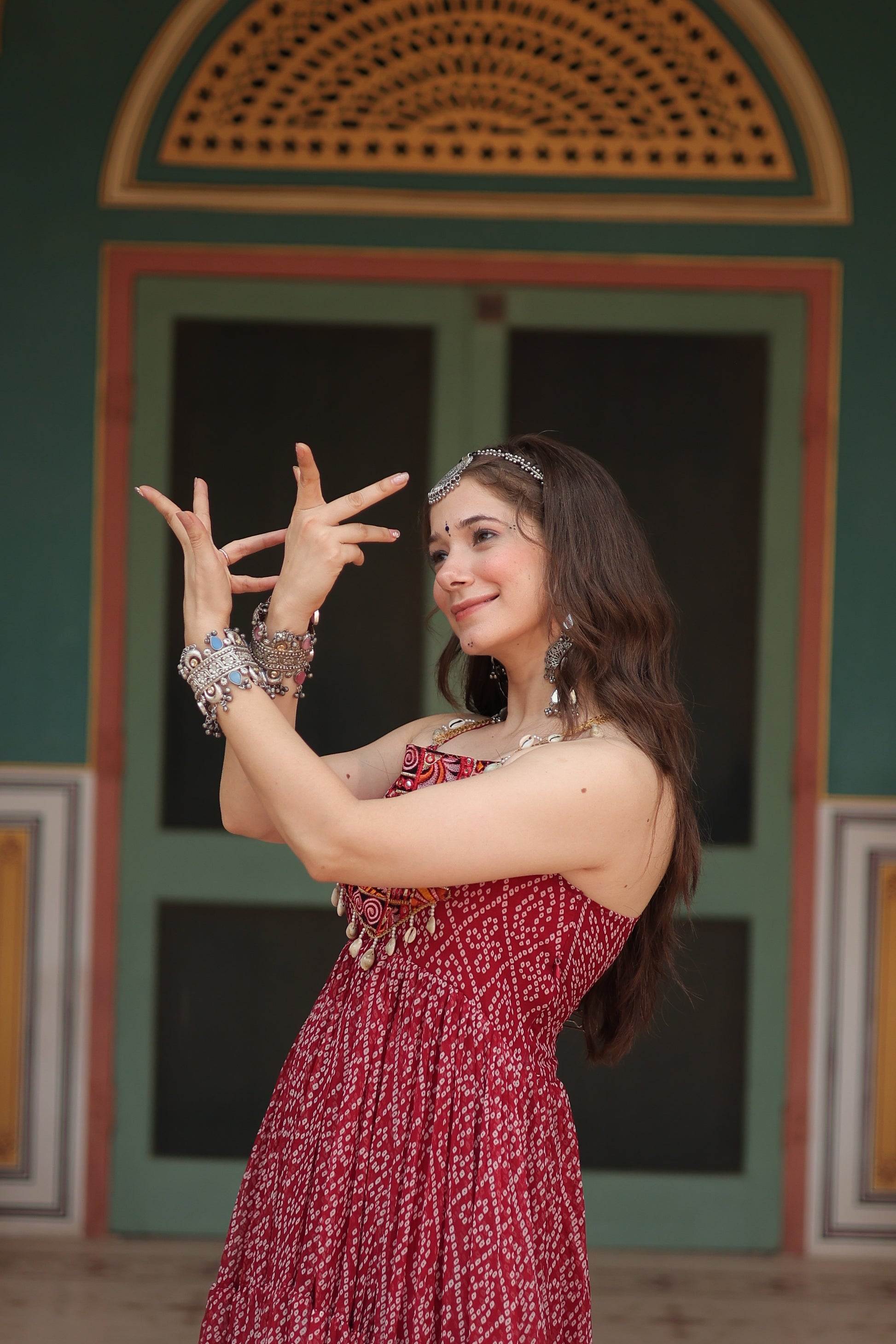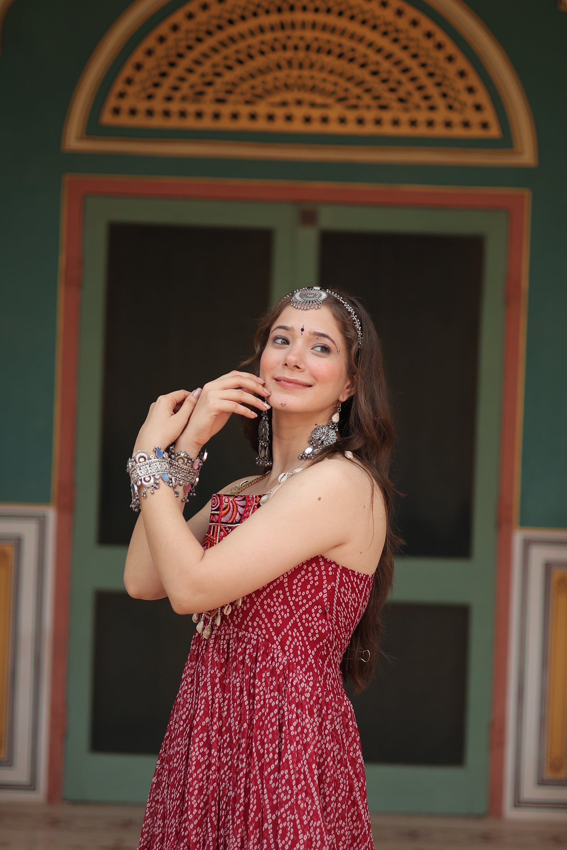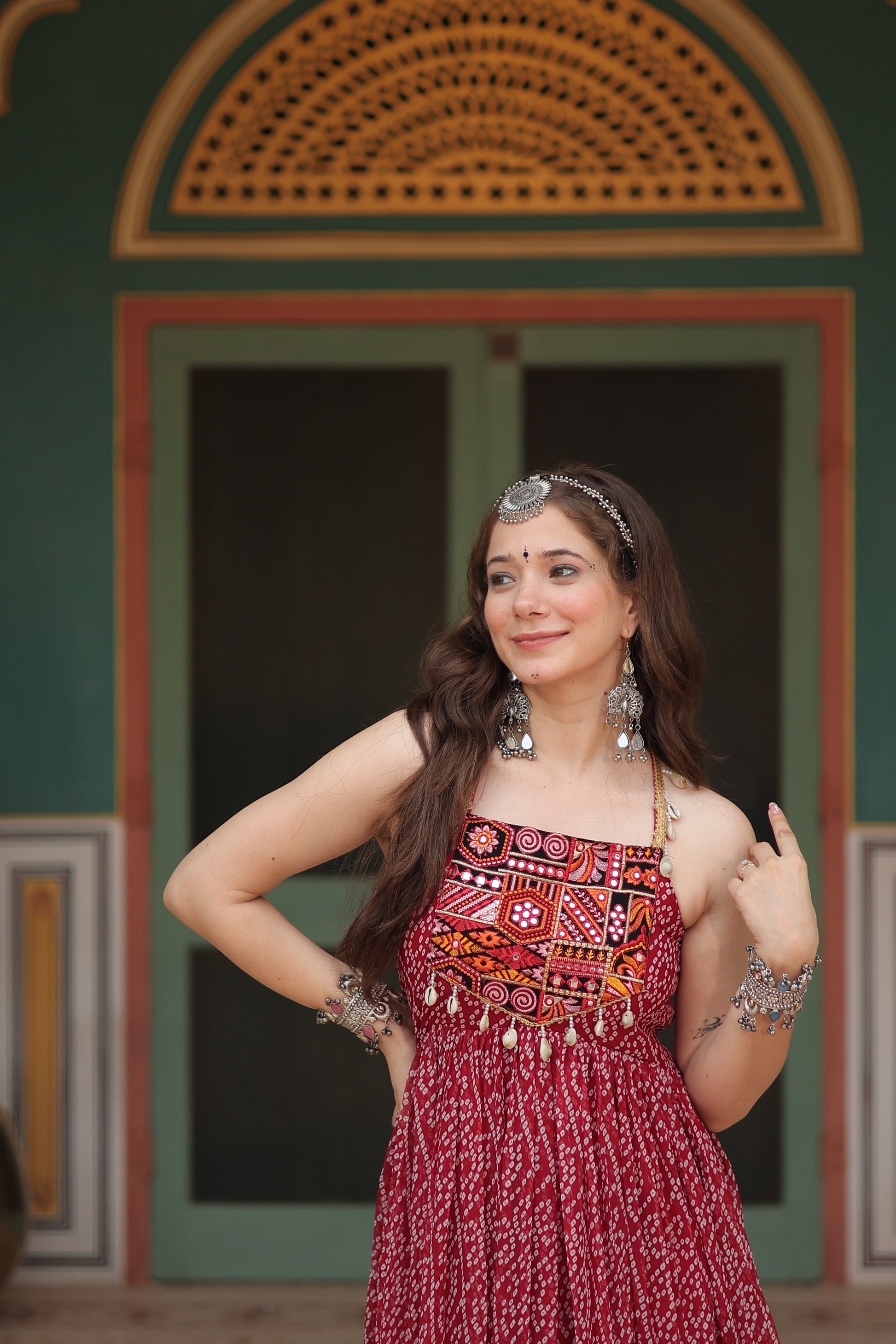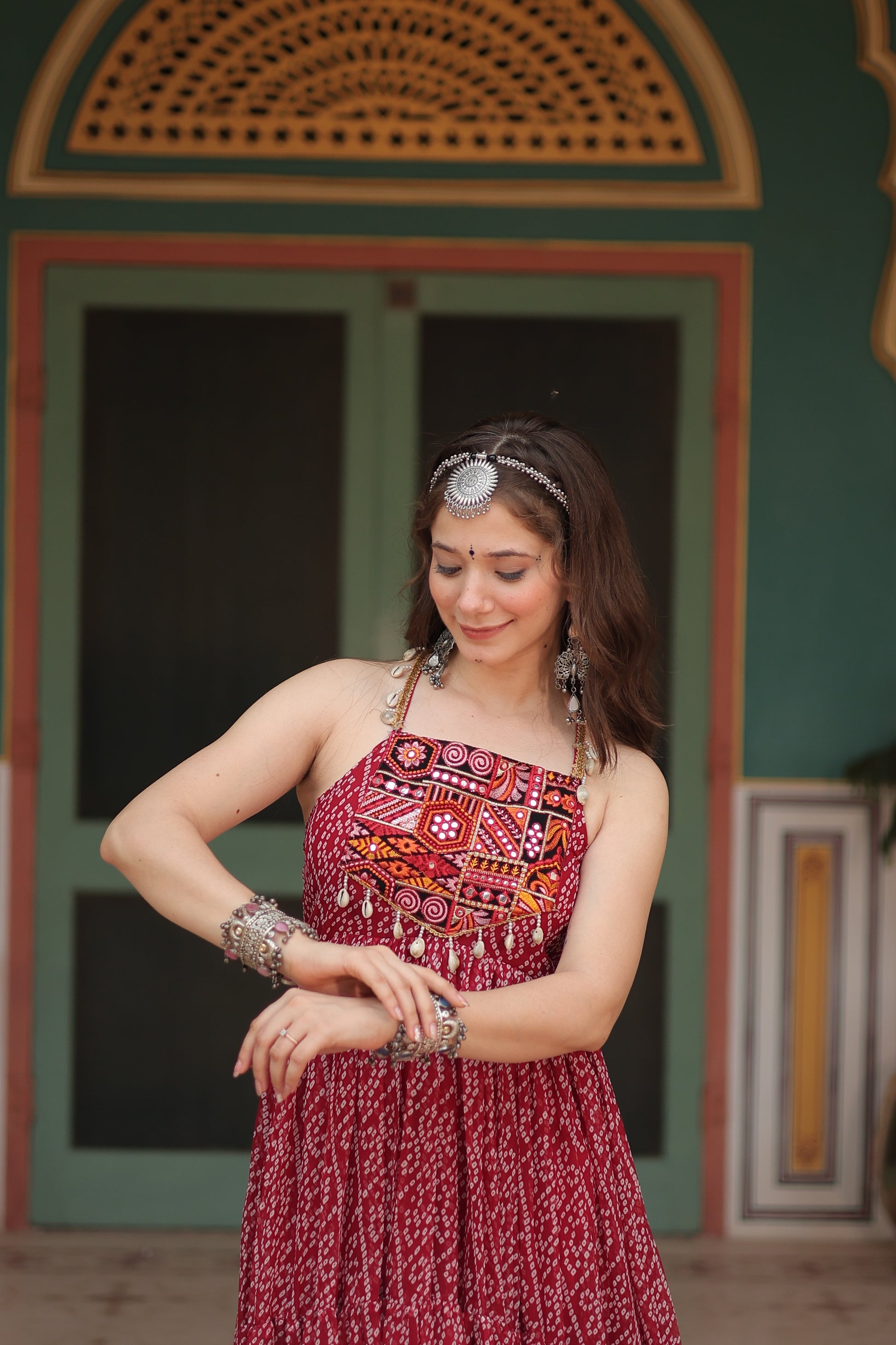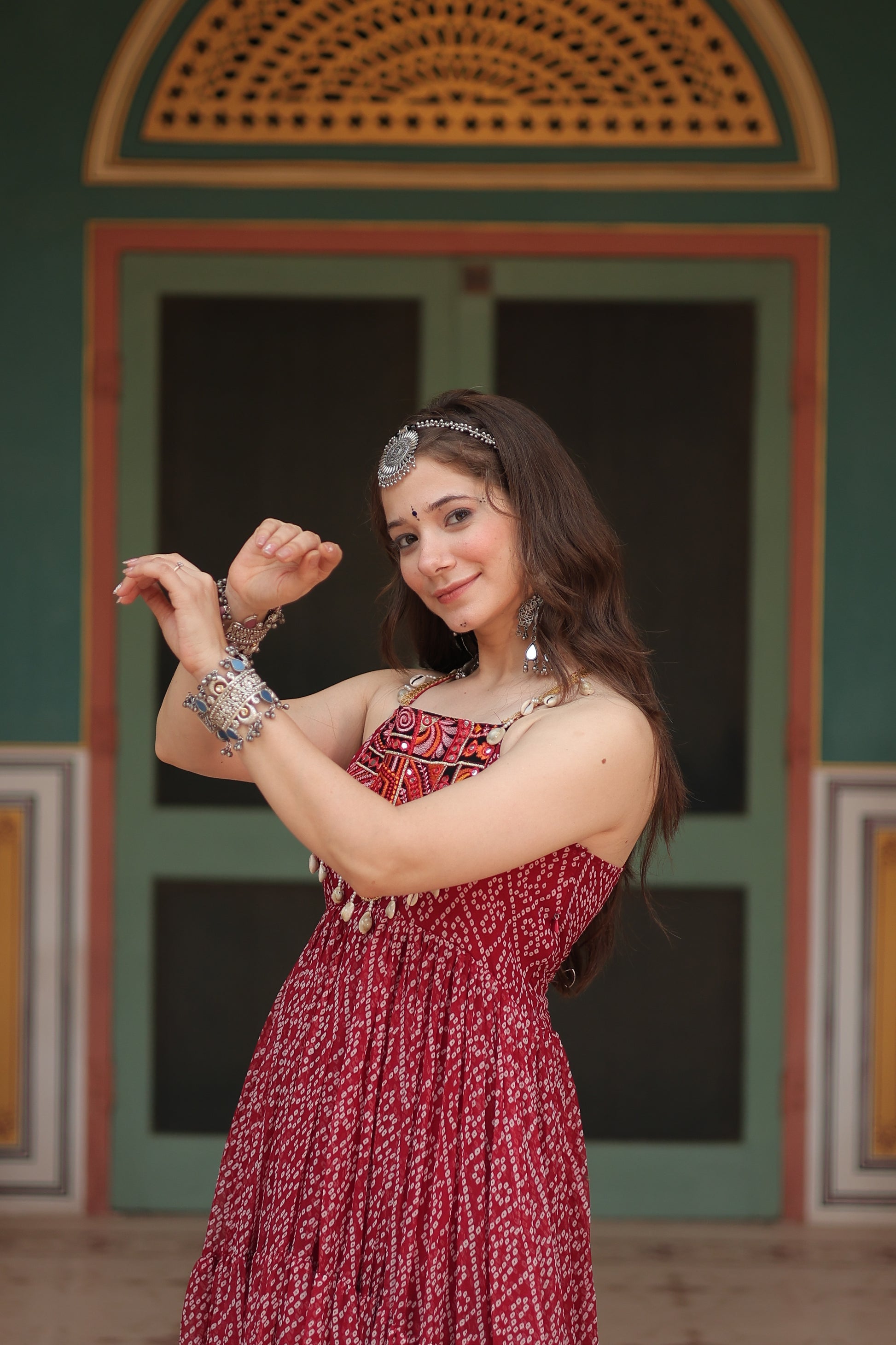 Taneesha Maroon Georgette Bandhani Printed Gown