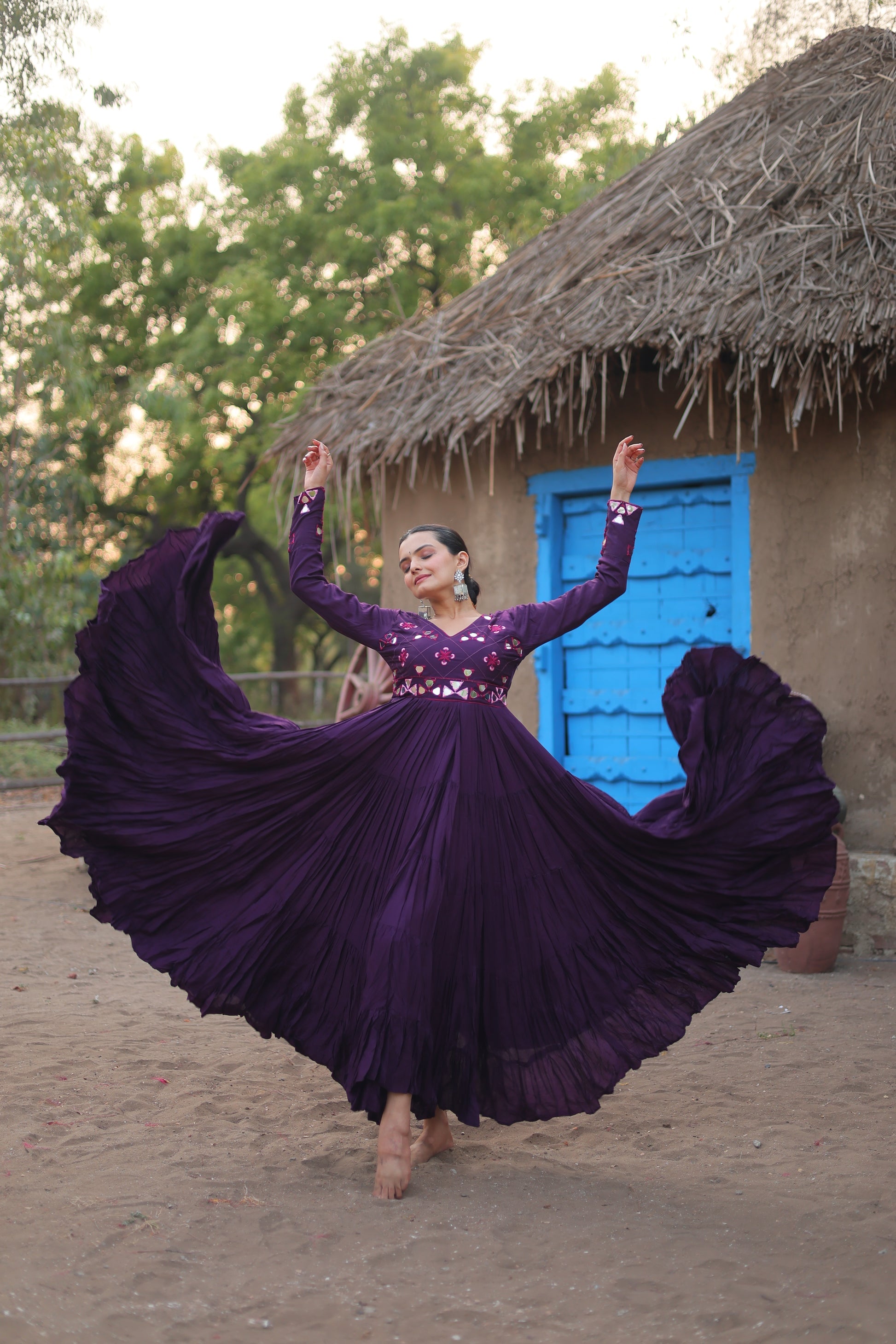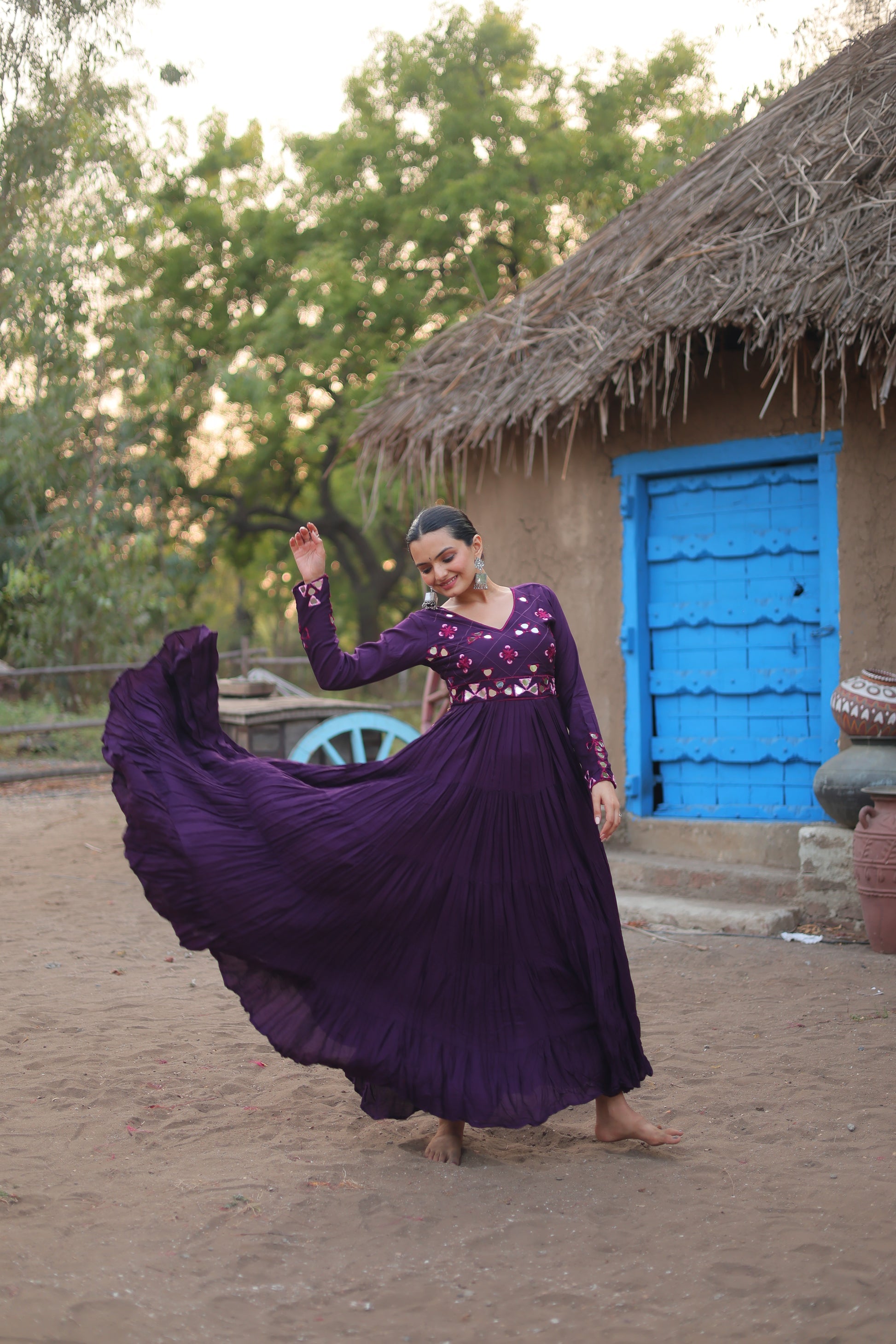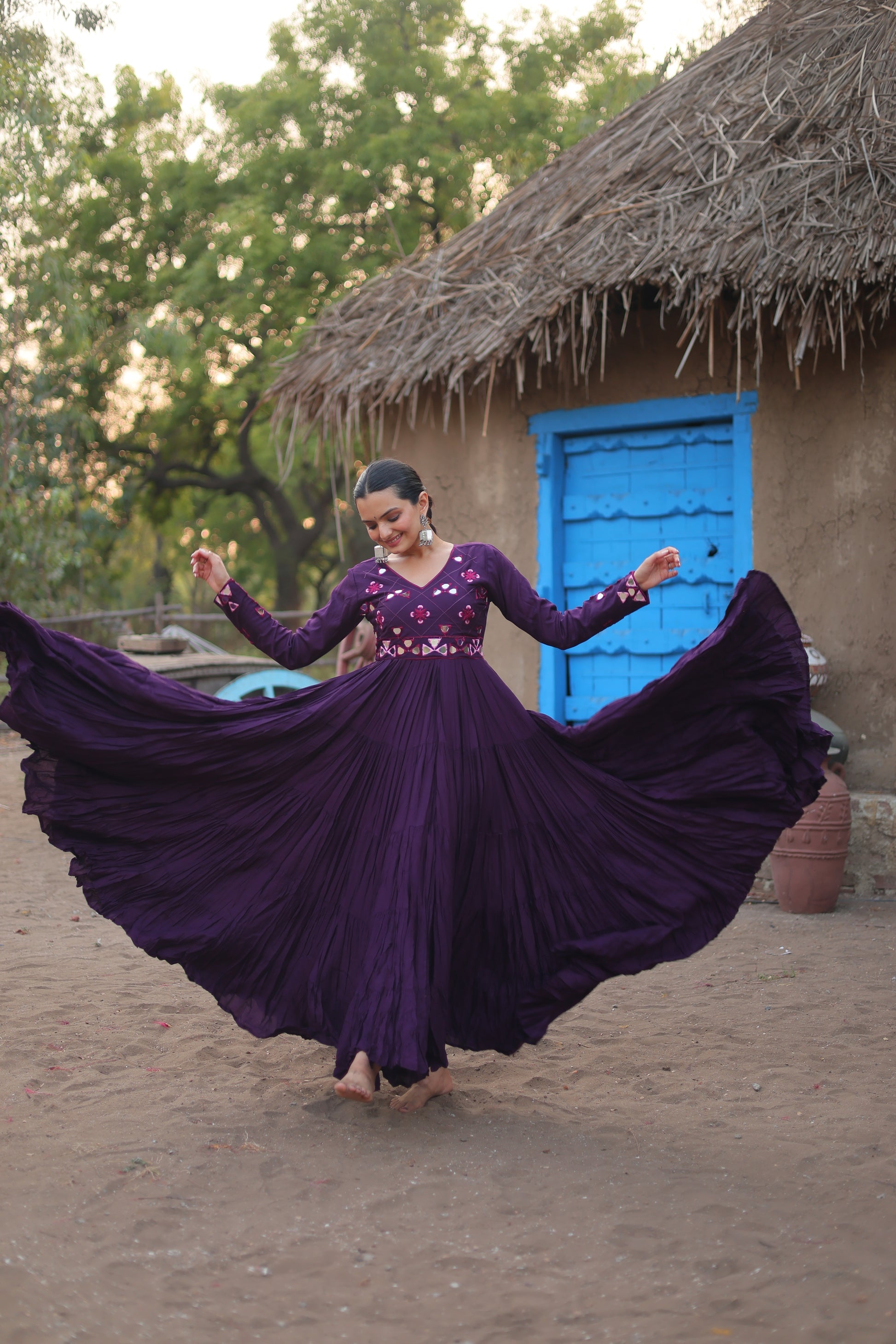 Vidhi Purple Pure Rayon Mirror work Anarkali Flared Gown