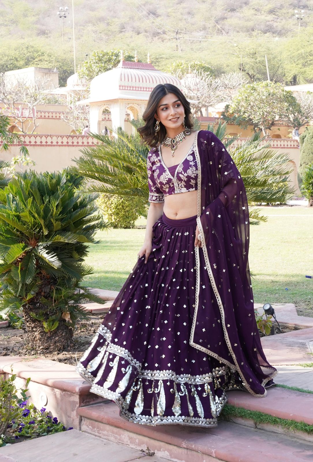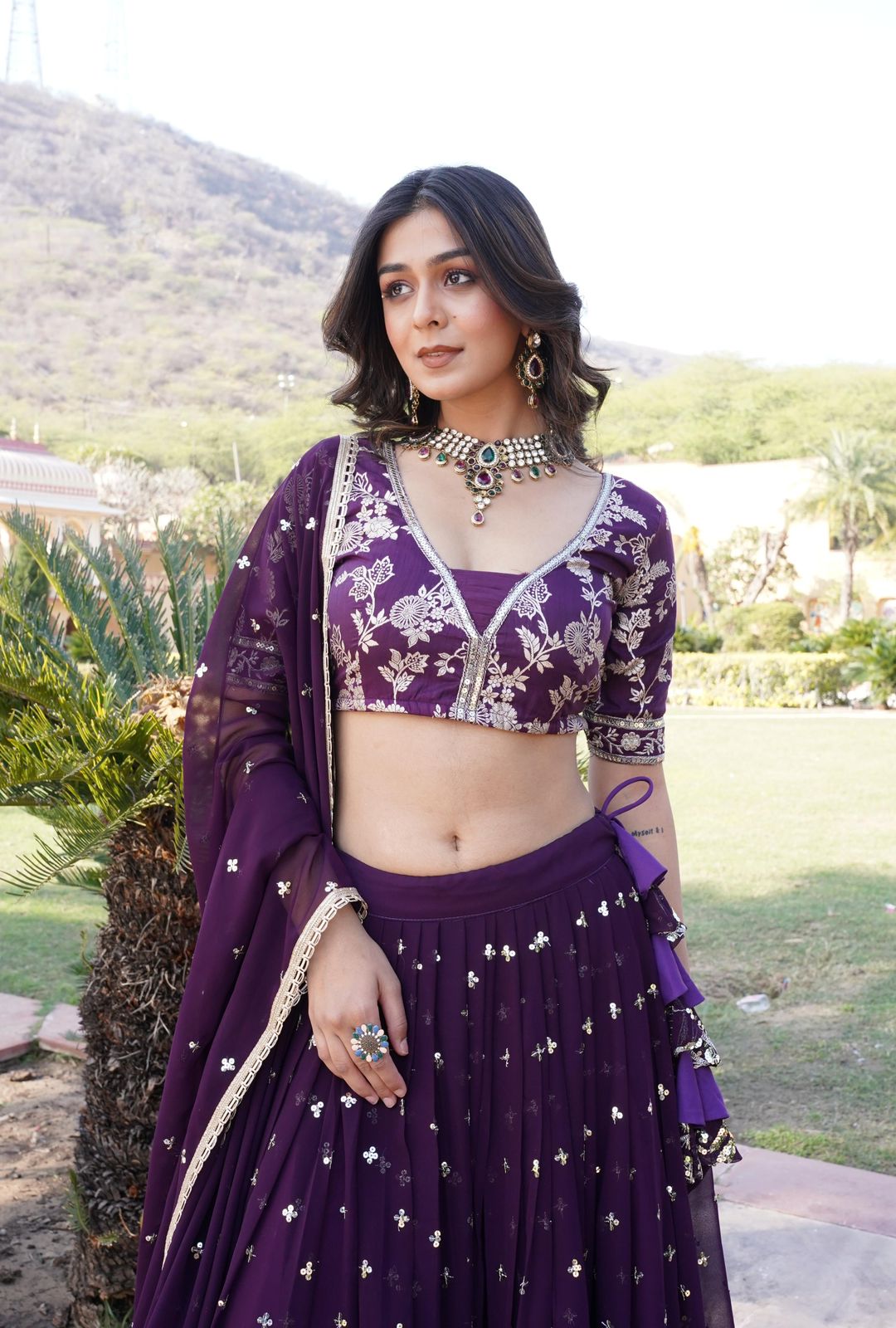 Vrinda Purple Sequence Embroidered Lehenga Set